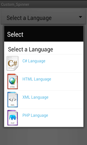 Now we will Create a Custom Spinner in Android: